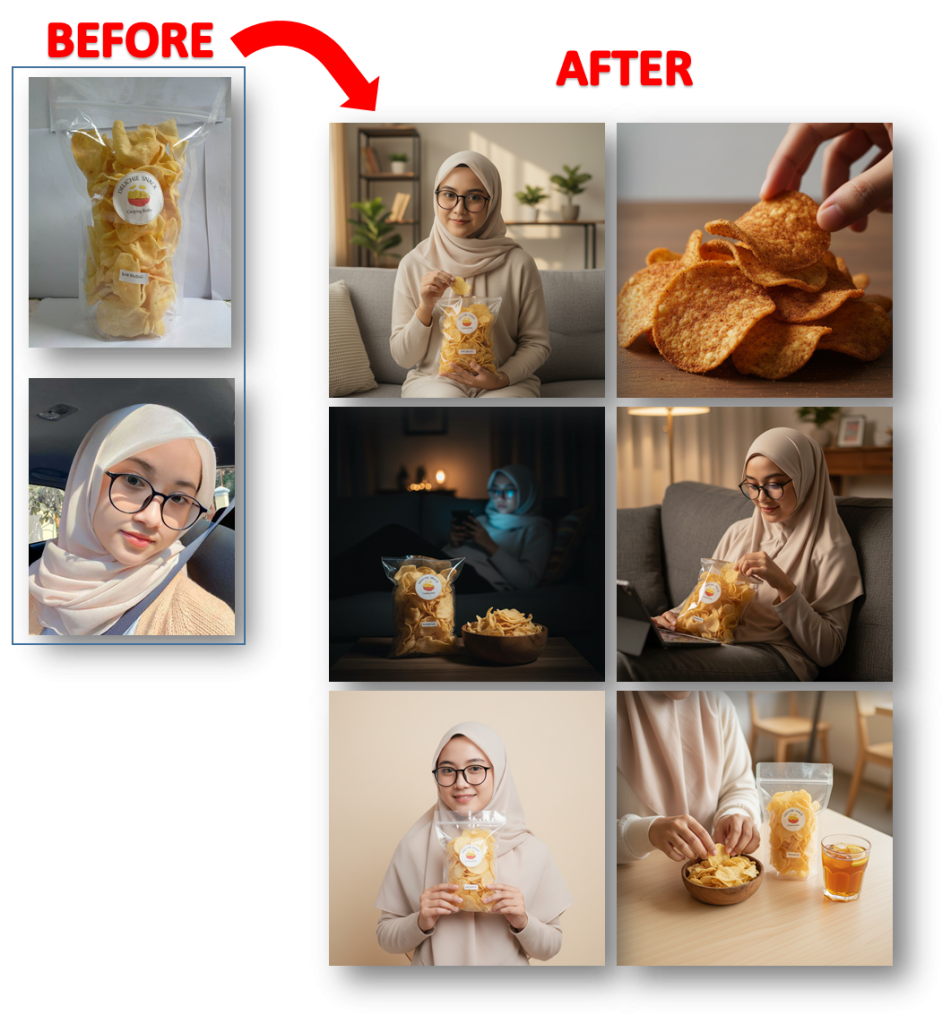 Bagaimana kalau kamu bisa ubah foto seadanya jadi visual kelas brand besar — tanpa fotografer, tanpa desain rumit, tanpa mahal.